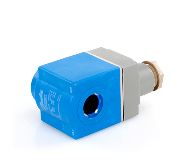 Cievka solenoidového ventilu Danfoss BE230DS, určená na použitie v chladiacich, klimatizačných a HVAC systémoch. Zapuzdrená, zacvakávací system upevnenia, pripojenie - svorkovnica, bez kabelu.