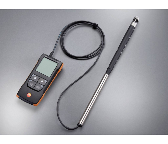 testo 416 – vrtuľkový anemometer s 16mm vrtuľkou as pripojením k aplikácii, pevne pripojená teleskopická sonda (max. 850 mm)