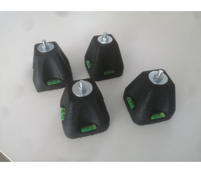 Antivibračné podlahové podstavce Tecnogas z vulkanizovanej zmesi SBR s ochranou proti UV žiareniu, ktorá sa používa na podopretie vonkajších kondenzačných jednotiek vybavených vodováhou na správne umiestnenie.