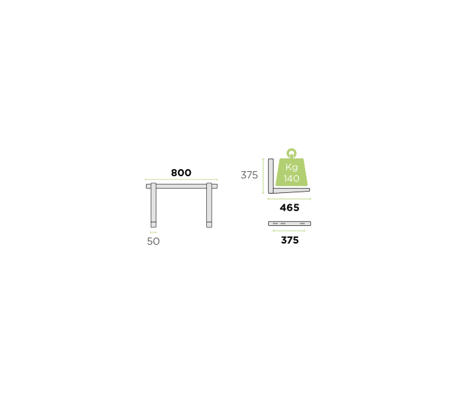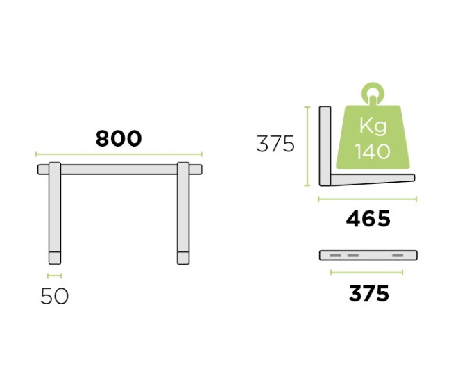 Nosnosť konzoly je 140 kg, rozmer 800x465 mm, farba RAL 9002.