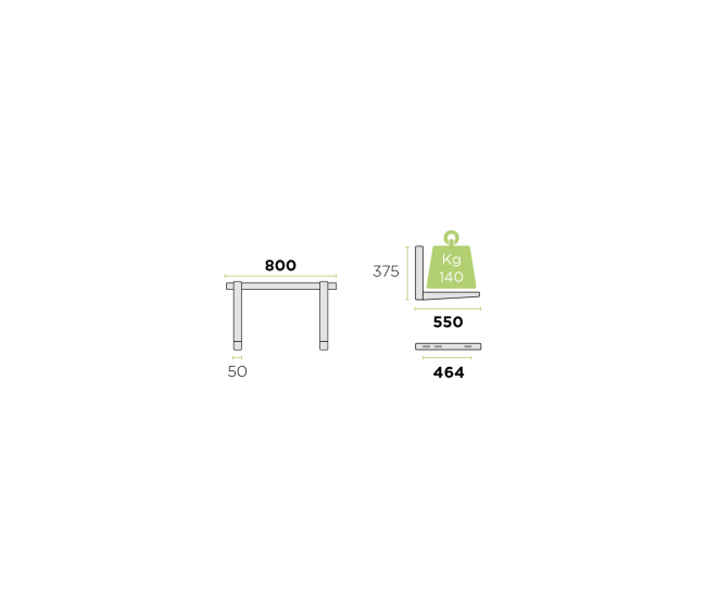 Nosnosť konzoly je 140 kg, rozmer 800x550 mm, farba RAL 9002.