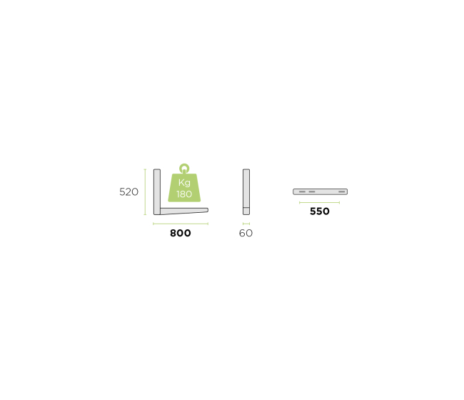 - Dĺžka vodorovného ramena: 800 mm