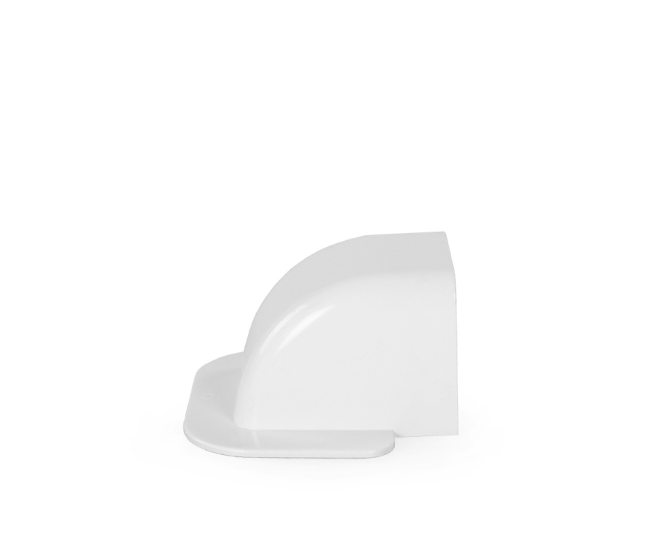 Použitie: prekrytie inštalačného žľabu pri prechode cez stenu. Farba: Čistá biela, snehovo biela.