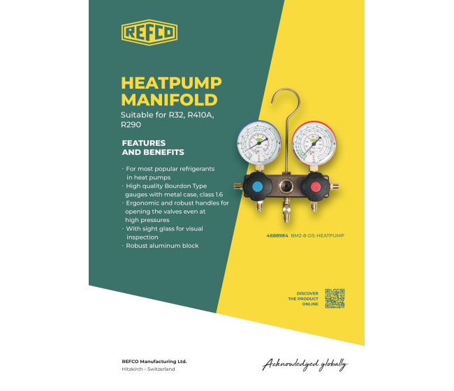 2-cestný rozdeľovač s analogovými manometrami, stupnica tlaku: bar / psi Určený pre chladivá R410A, R290 a R32
