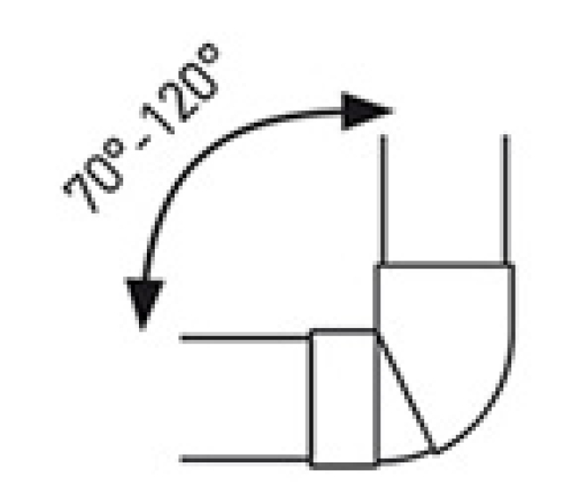 Použitie: umožňuje spojenie žľabov s rozmermi 60x45 mm v neštandardných uhloch. Flexibilné prispôsobenie uhla spojenia ktorý nie je pravouhlý, je v rozsahu 70° až 120°. Farba: Čistá biela, snehovo biela.