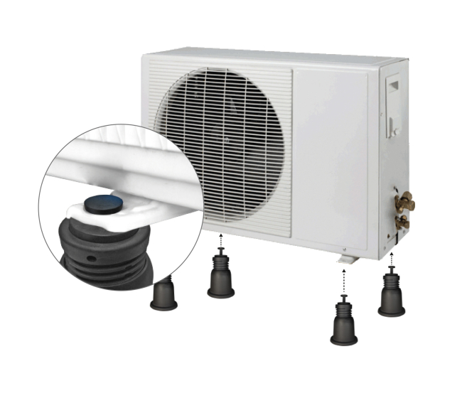 Nožičky pod vonkajšiu jednotku sú vyrobené z termoplastického materiálu vystuženého sklenenými vláknami s nastaviteľnou výškou od min. 100 mm do max. 130 mm.