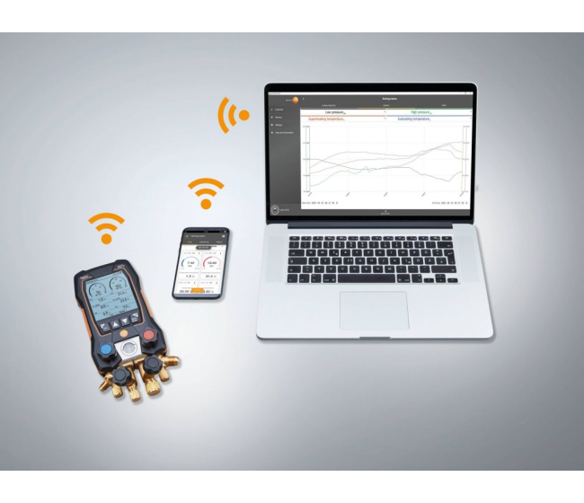 testo 557s - Chytrý digitálny servisný prístroj s Bluetooth a 4-cestným blokom ventilov