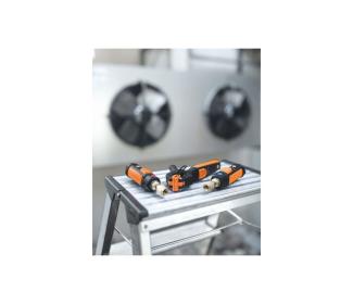 Kompaktný set chladenia obsahuje prístroj na meranie vysokého tlaku testo 549i a kliešťový teplomer testo 115i (každý prístroj dvakrát). V kombinácii so smartphone-om alebo tabletom, sú vhodné na detekciu porúch u klimatizačných a chladiacich systémov, obsluhu daných systémov a zároveň aj pre ich uvedenie do prevádzky. Oba meracie prístroje je možné rýchlo a jednoducho pripojiť priamo k tlakovej prípojke. Pri práci s tlakovými prípojkami, ktoré sú ďaleko od seba, testo 549i celý proces merania značne zjednodušuje – vďaka Bluetooth spojeniu so smartphonom alebo tabletom. Ďalšia výhoda: keďže na meranie nie sú potrebné žiadne hadice, stratí sa veľmi málo, alebo vôbec žiadne chladivo. A ak je zároveň použitý Bluetooth kliešťový teplomer testo 115i, je možné vypočítať jednotlivé parametre chladiaceho systému (napr. prehriatie).Vďaka aplikácii testo Smart Probes App nainštalovanej na Vašom mobilnom zariadení môžete pohodlne odčítať namerané hodnoty. Aplikácia naviac ponúka automatický výpočet výparnej a kondenzačnej teploty. Všetky namerané udaje sú zobrazené vo forme grafu alebo tabuľky.Protokoly merania je potom možné zaslať rovno e-mailom vo formáte *.pdf alebo *.xls.