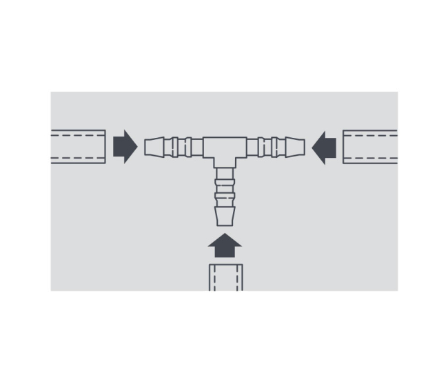 T-konektor hadice k hadicovému spojeniu 1/4" 6 mm.