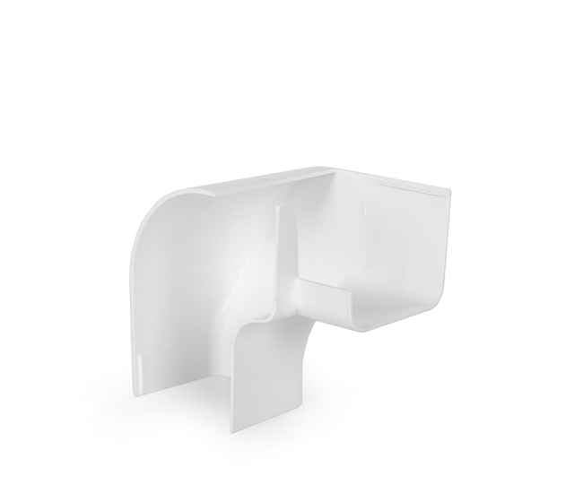 Použitie: spája žľaby s otočením o 90°, umožňuje viesť žľaby klimatizácie v ľavom vertikálnom smere, napríklad zo steny na stenu alebo zo steny na strop. Farba: Čistá biela, snehovo biela.